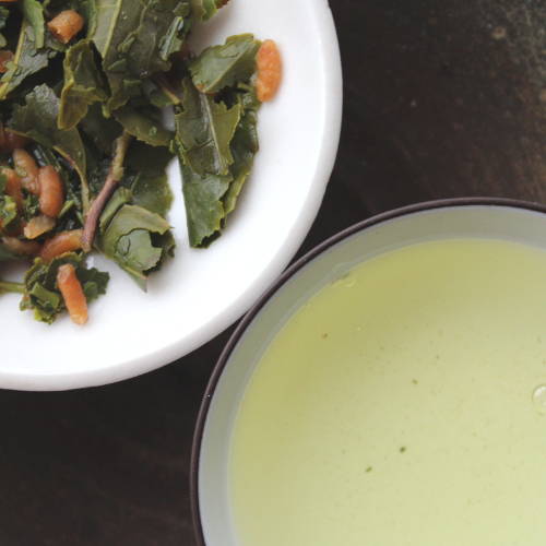Un thé vert japonais bancha de Kirishima qui s’allie à des grains de riz torréfiés. Les feuilles de thé sont issues d’une récolte d’automne, elles contiennent donc un taux très faible de caféine.