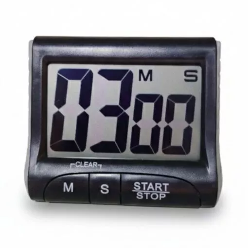 Minuteur électronique très simple d’utilisation. Sonne dès que le temps choisi est dépassé. Réglage individuel des minutes et des secondes. 3 possibilités pour le poser: sur tout support métallique à l’aide de son aimant, par clips ou debout.