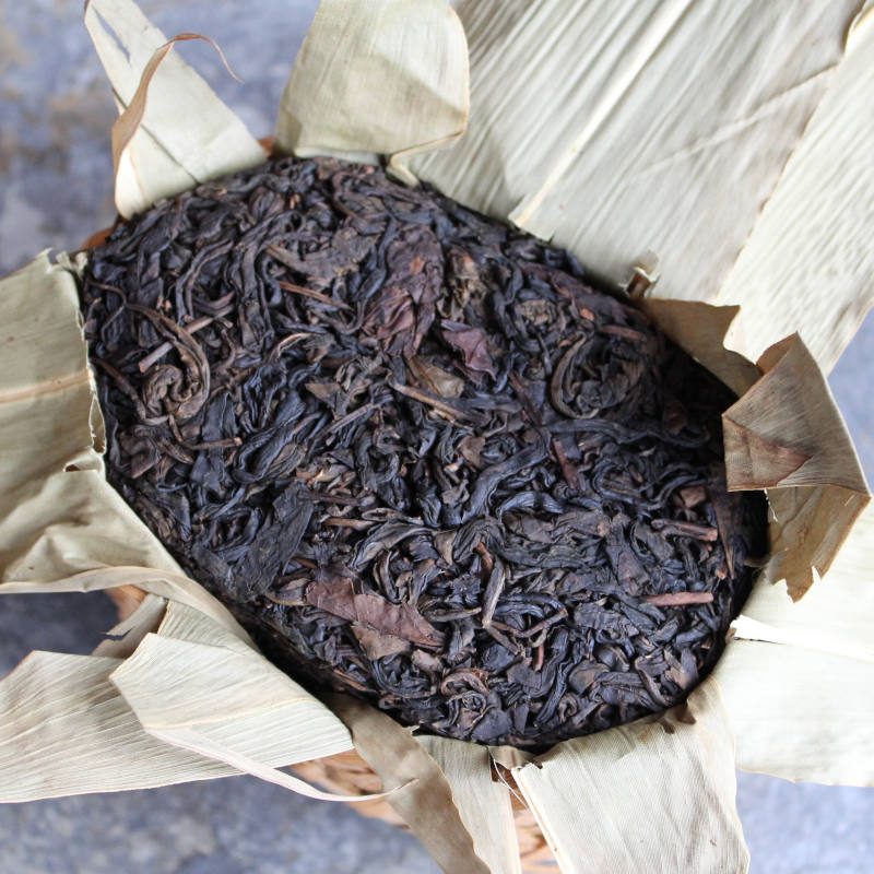 Thé heicha vieilli en paniers de bambous, arômes de camphre, thym et de fruits à coque.